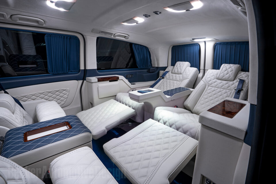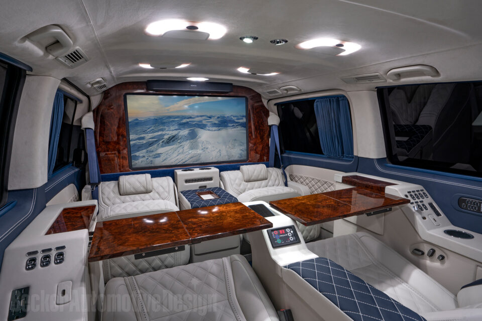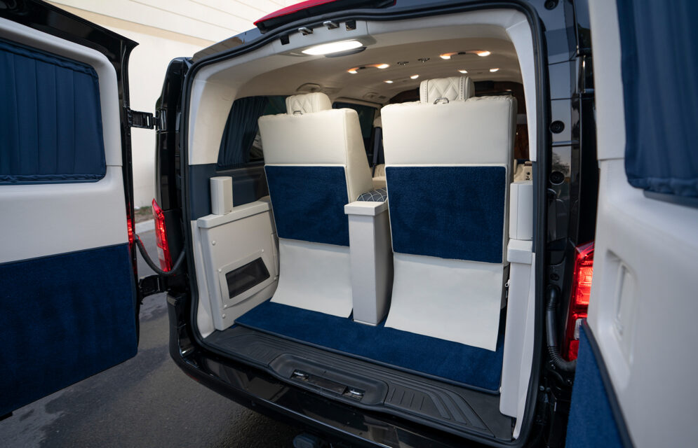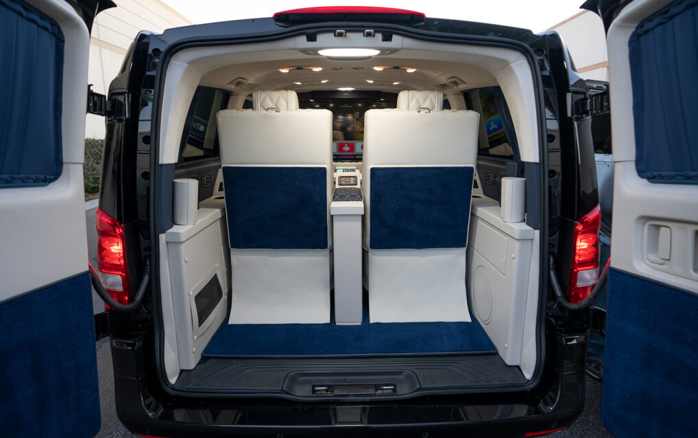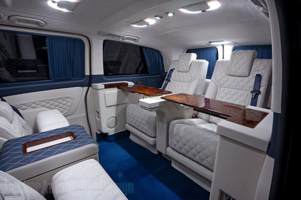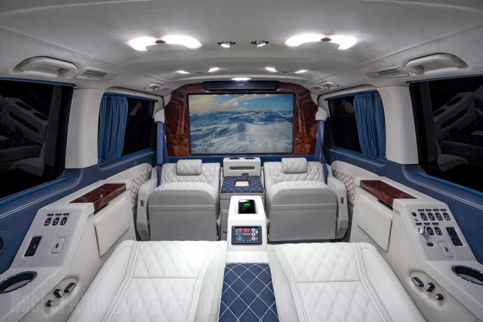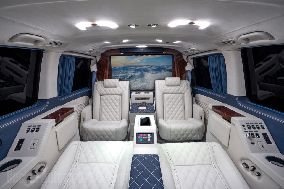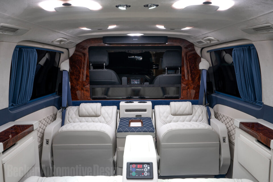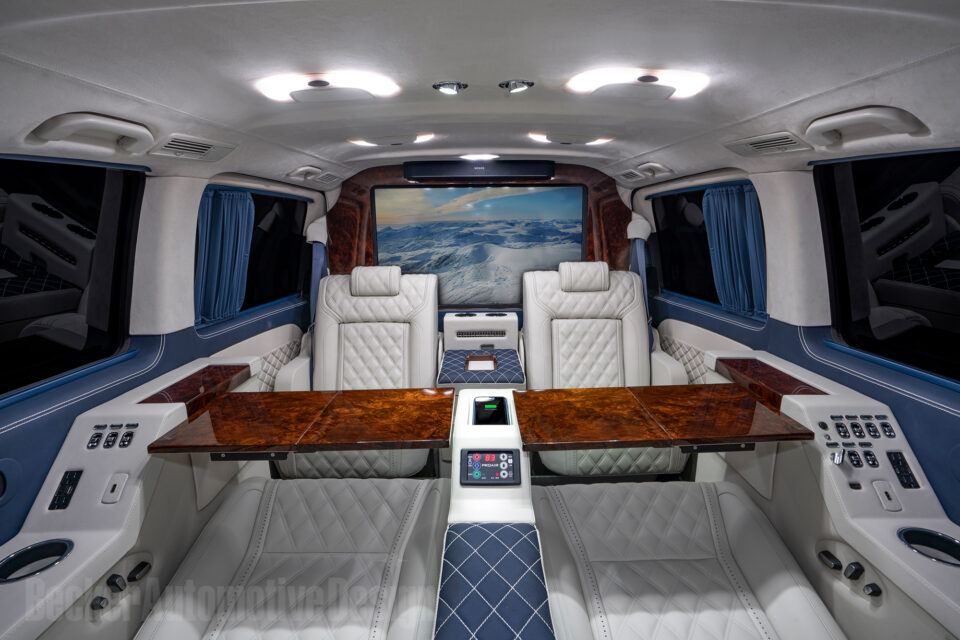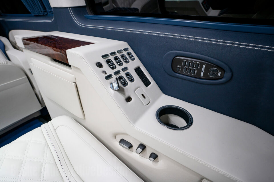 Exquisite low mileage 20″ stretched Becker ESV with 10″ lengthened rear doors. Celebrity owned since new. Meticulously maintained. Amazing studio quality music system. Interior amenities include comfortable seating for 5 rear seated passengers in privacy. Custom VIP 6-way fully electric bucket seats with electric leg extensions, massage systems, thermo-electric heating/ cooling and electric lumbar supports. Two custom made aviation style folding work tables. Rear facing, three person seat with flip up bottom cushions for ease of entry and exit. Crestron touch screen controls the rear AV system, front and rear view cameras and all Apple TV functions. A 32″ LCD monitor is mounted on a fully-electric center divider partition. Mobile office capabilities include a military spec mobile router with additional roof mounted antennas to assure excellent internet connection. $416,000 when new.