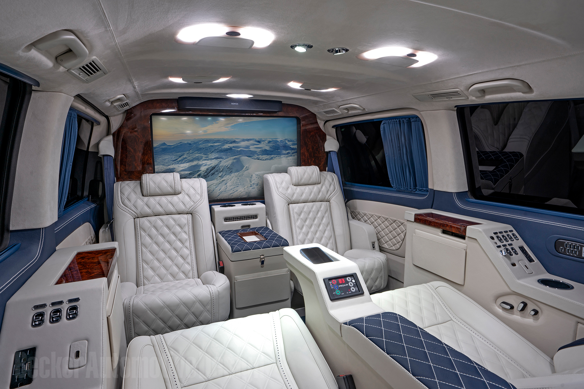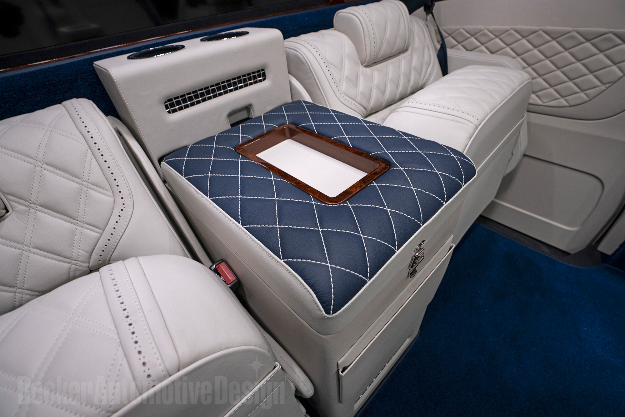 Exquisite low mileage 20″ stretched Becker ESV with 10″ lengthened rear doors. Celebrity owned since new. Meticulously maintained. Amazing studio quality music system. Interior amenities include comfortable seating for 5 rear seated passengers in privacy. Custom VIP 6-way fully electric bucket seats with electric leg extensions, massage systems, thermo-electric heating/ cooling and electric lumbar supports. Two custom made aviation style folding work tables. Rear facing, three person seat with flip up bottom cushions for ease of entry and exit. Crestron touch screen controls the rear AV system, front and rear view cameras and all Apple TV functions. A 32″ LCD monitor is mounted on a fully-electric center divider partition. Mobile office capabilities include a military spec mobile router with additional roof mounted antennas to assure excellent internet connection. $416,000 when new.