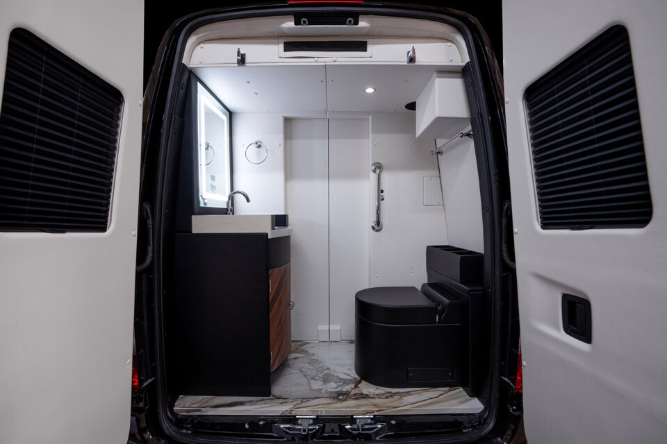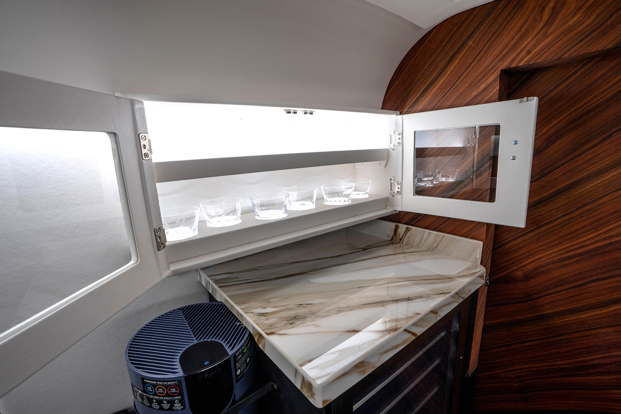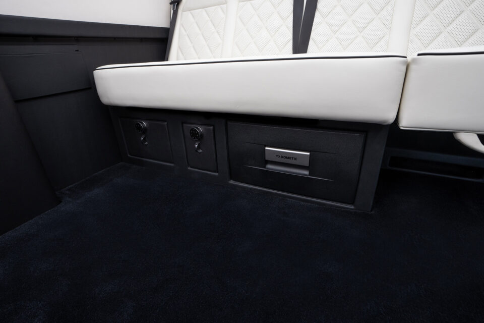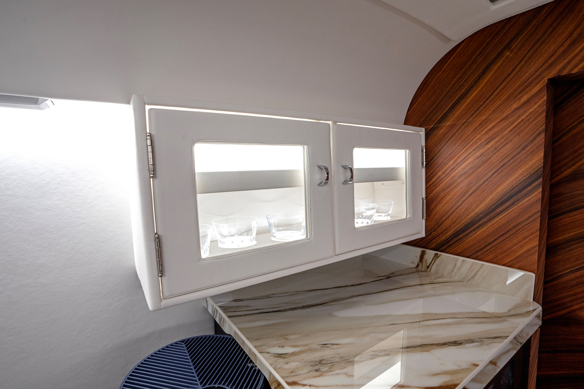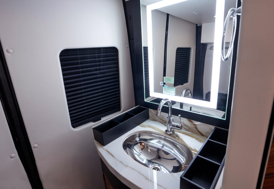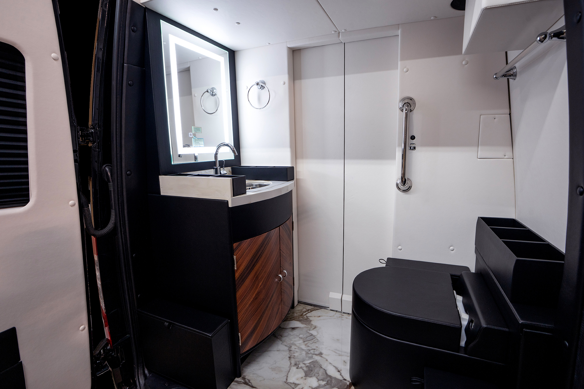Rare opportunity! 2022 Stretched Becker Cadillac Escalade ESV. 20″ stretch with 10″ lengthened rear doors. An elegant dark navy blue imported Italian diamond stitched leather coupled with rich hand crafted genuine burl wood veneer finish throughout. Includes custom Becker VIP 6 way electric bucket seats with one touch electric leg extensions, two aviation style folding work tables, center console with wireless cell charging and storage compartment. Two fully electric full size rear facing bucket seats with built in 3 point seatbelts and electric adjustable headrests. A rear facing center console with a large top loading refrigerator. A large 43″ LCD screen that is mounted on a fully-electric center divider partition for easy viewing through the front windshield. The Bose surround sound system and Apple TV is controlled through an Apple iPad with Crestron app for an intuitive easy to use AV switching system. Mobile office capabilities include a high-end 5G on-board mobile router with additional roof mounted antennas to assure a solid internet connection. $425k when new.