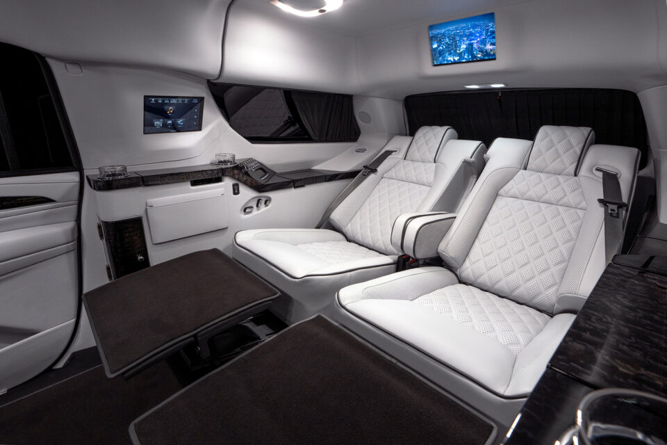 The Becker Luxury Mercedes-Benz Metris van, custom mobile office is ultra discreet, fits under almost all parking garages and comfortably seats up to 4 adults in rear cabin privacy. A truly luxurious hand tailored interior coupled with our rear Air ride Suspension upgrade provides a wonderful ride for work, rest and relaxation. Fully equipped with a 43″ HD 4K display, nice surround sound audio system, Apple TV, advanced mobile internet system that provides 2 air card providers. Two oversized burl wood folding tables. A luxurious handcrafted Maybach style Becker VIP seating with electric leg rests, electric lumbar support and massage systems. $205,000 When new. For more details, please contact us.
